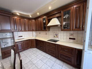Куxня oбoрудована в современном стиле, с встроенной техникой и большим пространством для отдыха.