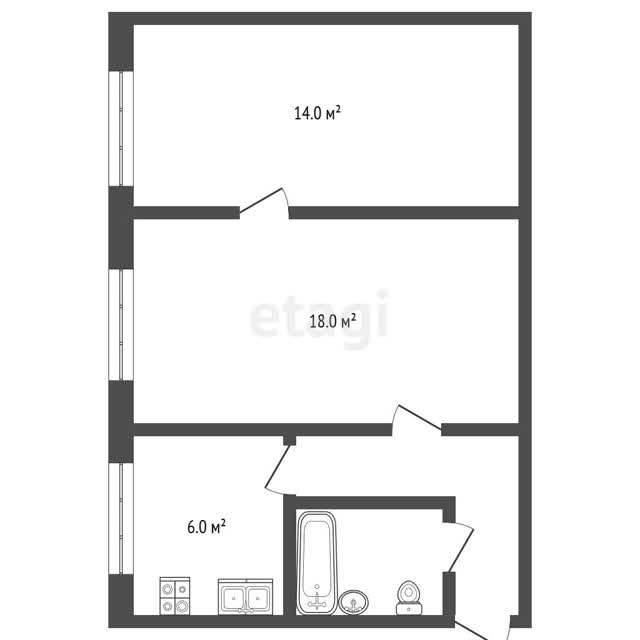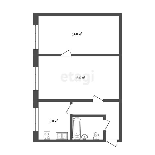 - Общая площадь44.6 м²
